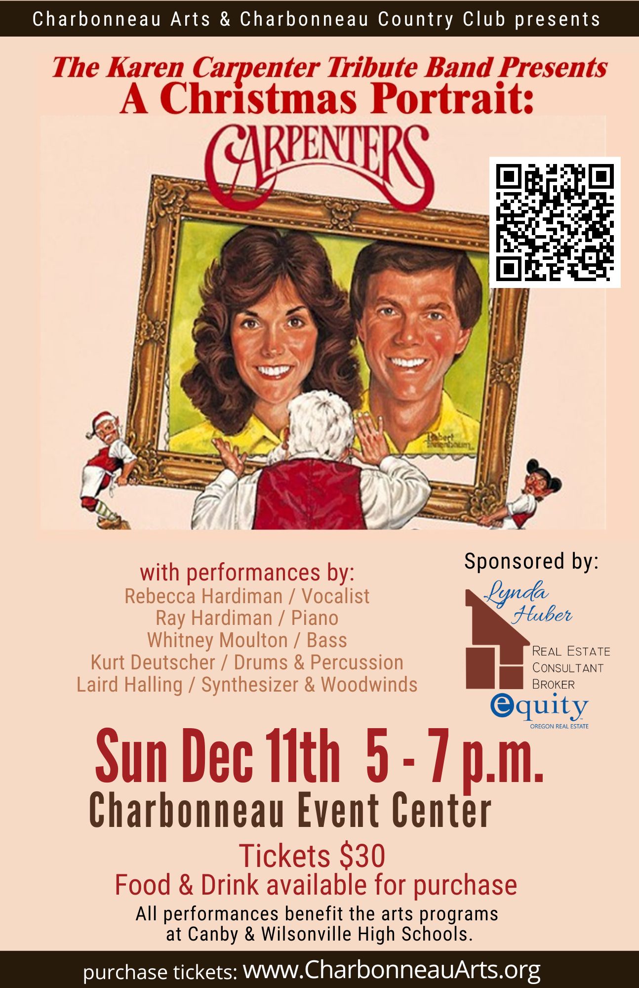 The concert begins at 5:00 p.m. in the Event Center. Will-call tickets can be picked up beginning at 4:00 p.m. Food service will also begin at 4:00, featuring a buffet meal offering catered by Nicole and the Market Café.