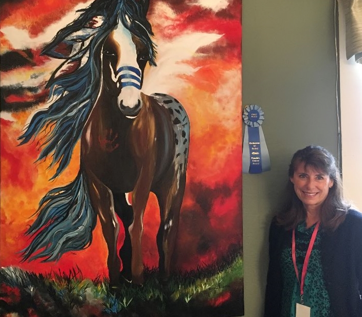 For 2018, they chose Holly Kroening, last year’s winner of the People’s Choice Award with her striking horse portrait in acrylics, “Running Reid.” All of Holly’s paintings attracted a lot of “oohs” and “aahs,” and festival goers were so impressed that they lined up to purchase cards and prints of her work, as well as one of her large originals.