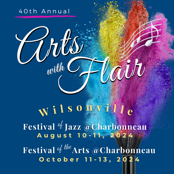 40th ANNUAL FESTIVAL OF THE ARTS @ CHARBONNEAU SET FOR OCTOBER 11-13, 2024 & the WILSONVILLE JAZZ FESTIVAL @ CHARBONNEAU WILL OPEN ALL DAY AUGUST 11, 2024.